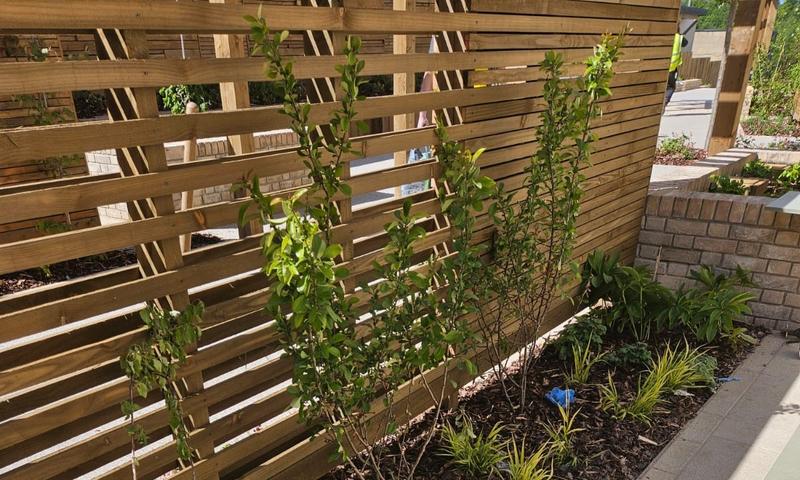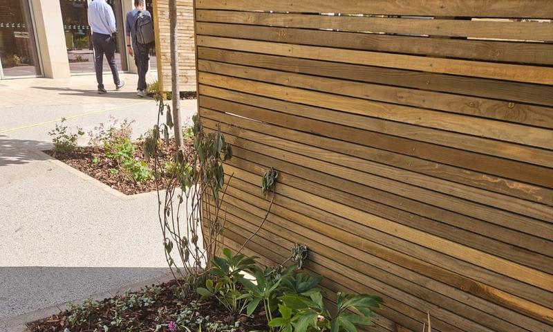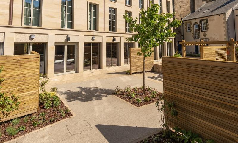 We chose a range of plants, shrubs, climbers and trees that will create year-round visual appeal for guests without needing too much upkeep. We also incorporated a woodchip mulch around the plants to keep the beds looking tidy and to keep them low maintenance – the mulch helps to suppress weeds, retain moisture in the soil and regulate temperatures in the bedding to protect against extreme weather conditions. The choice of garden bedding, alongside the wooden structural elements such as screens, pergolas and benches, also complement the surrounding natural landscapes of the charming market town.